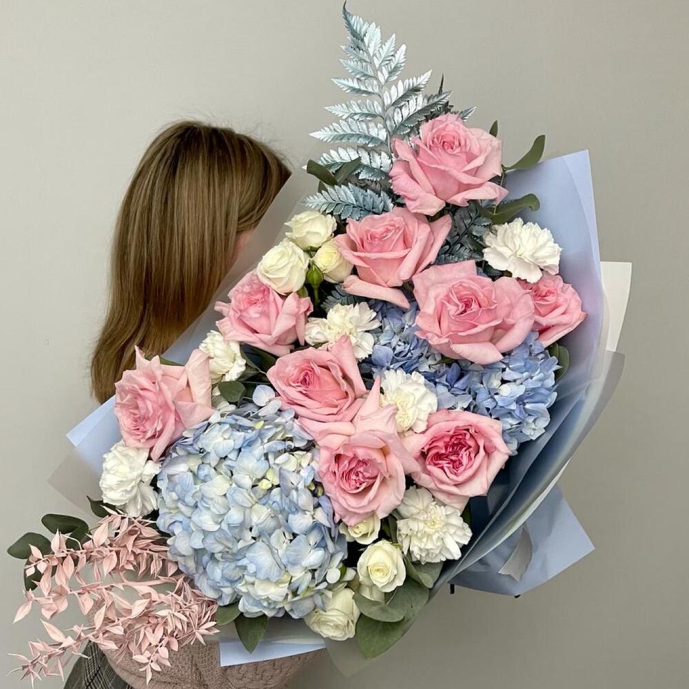Букет с розами и гортензией