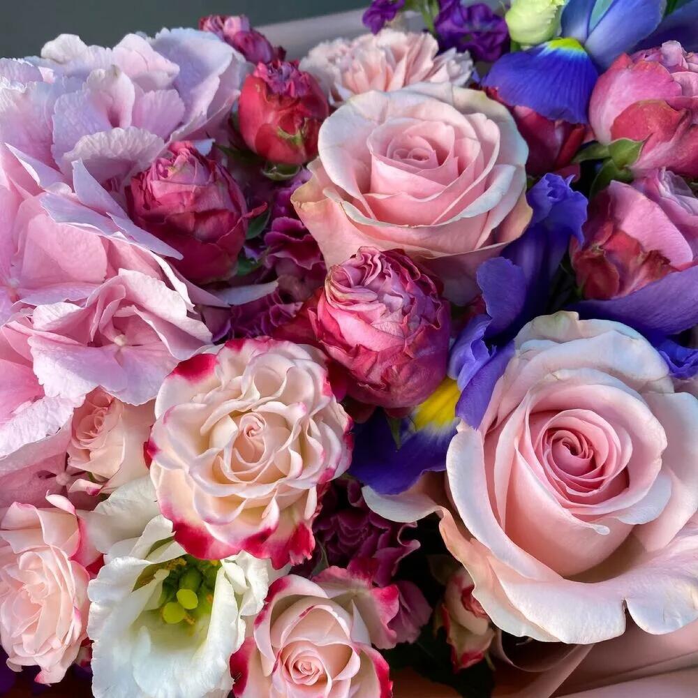 Категорий: Альстромерии, Гвоздики, Гортензии, Ирисы, Лизиантусы, Розы