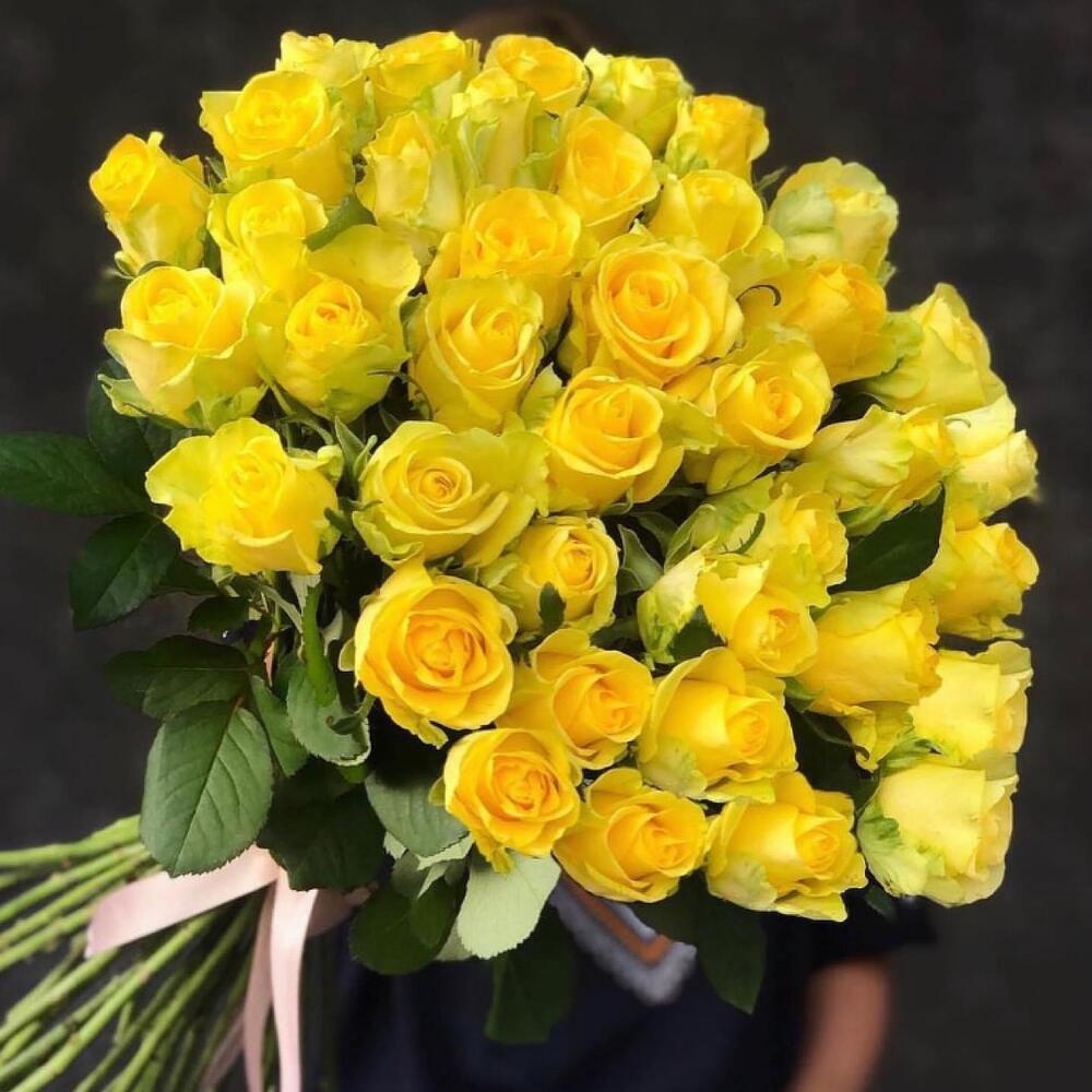 желтые розы – 51 шт. Атласная лента – 1 шт.