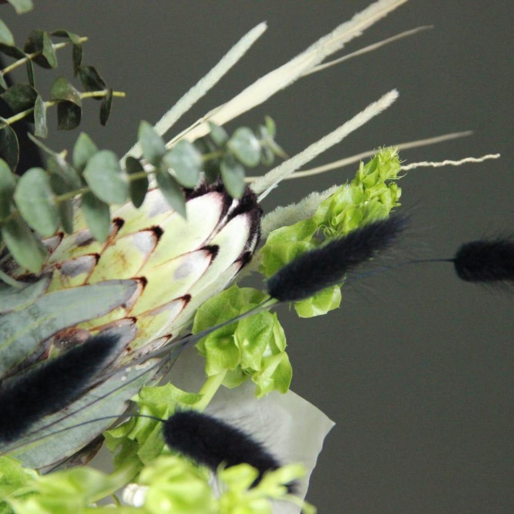 Дельфиниум – 3 шт.Маттиола – 3 шт.Сирень – 1 шт.Эвкалипт – 5 шт.Роза сортовая – 3 шт.Артишок – 2 шт.Лагурус – 4 шт.Упаковка крафт – 3 шт.папоротник стабилизированный – 1 шт.шнур декоративный – 1 шт.ирландский колокольчик – 3 шт.тимофеевка – 5 шт.