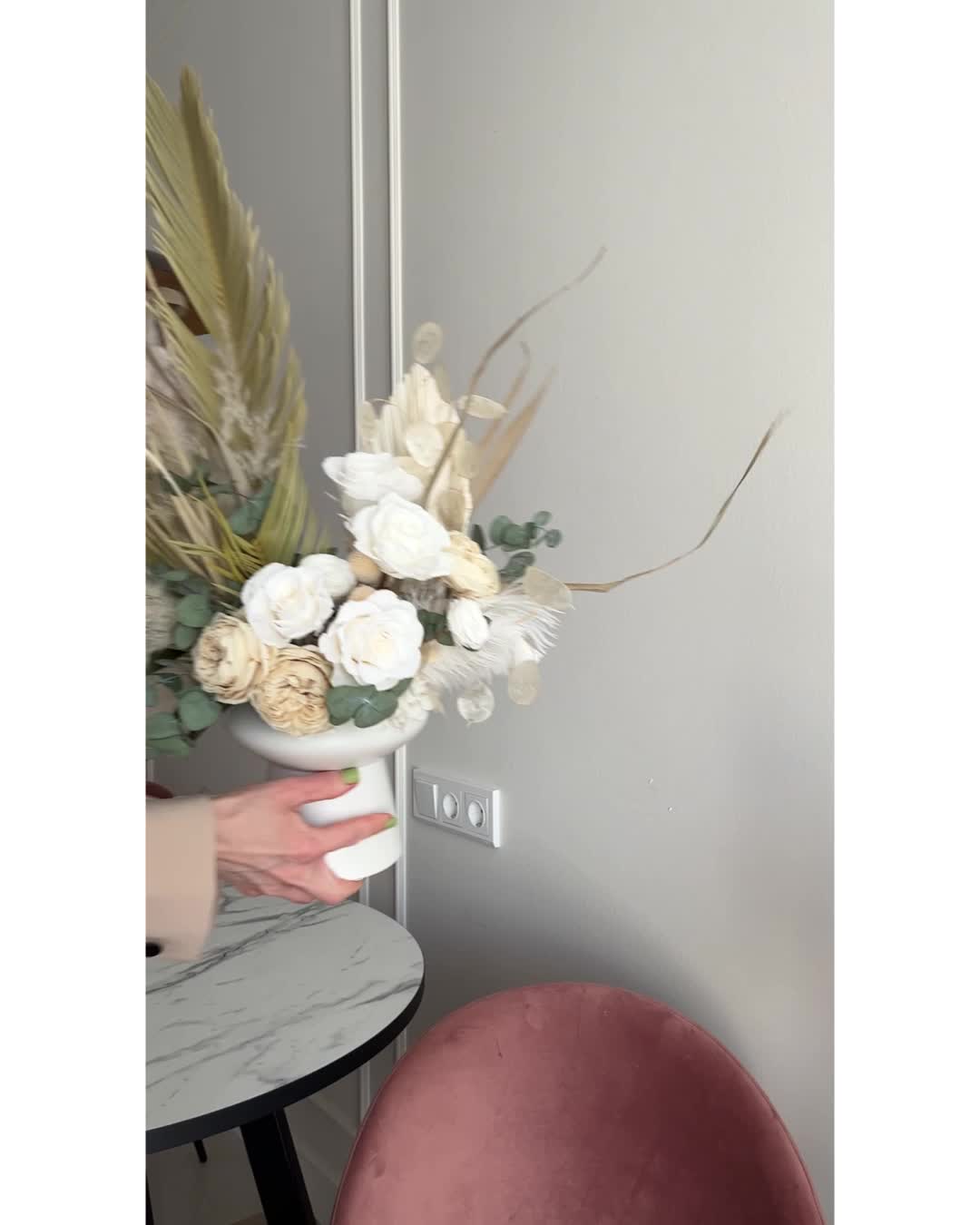 Интерьерная композиция из стабилизированных цветов и сухоцветов