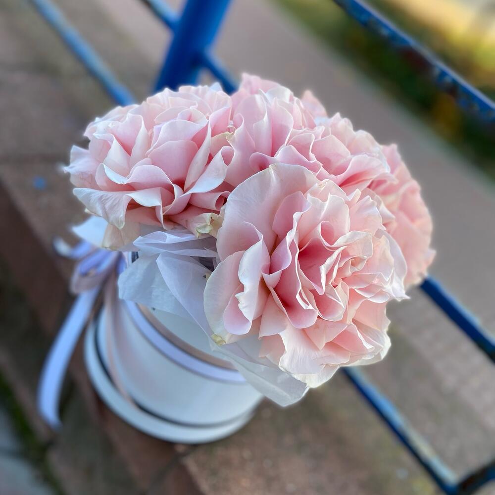 Композиция из французских роз в шляпной коробке
