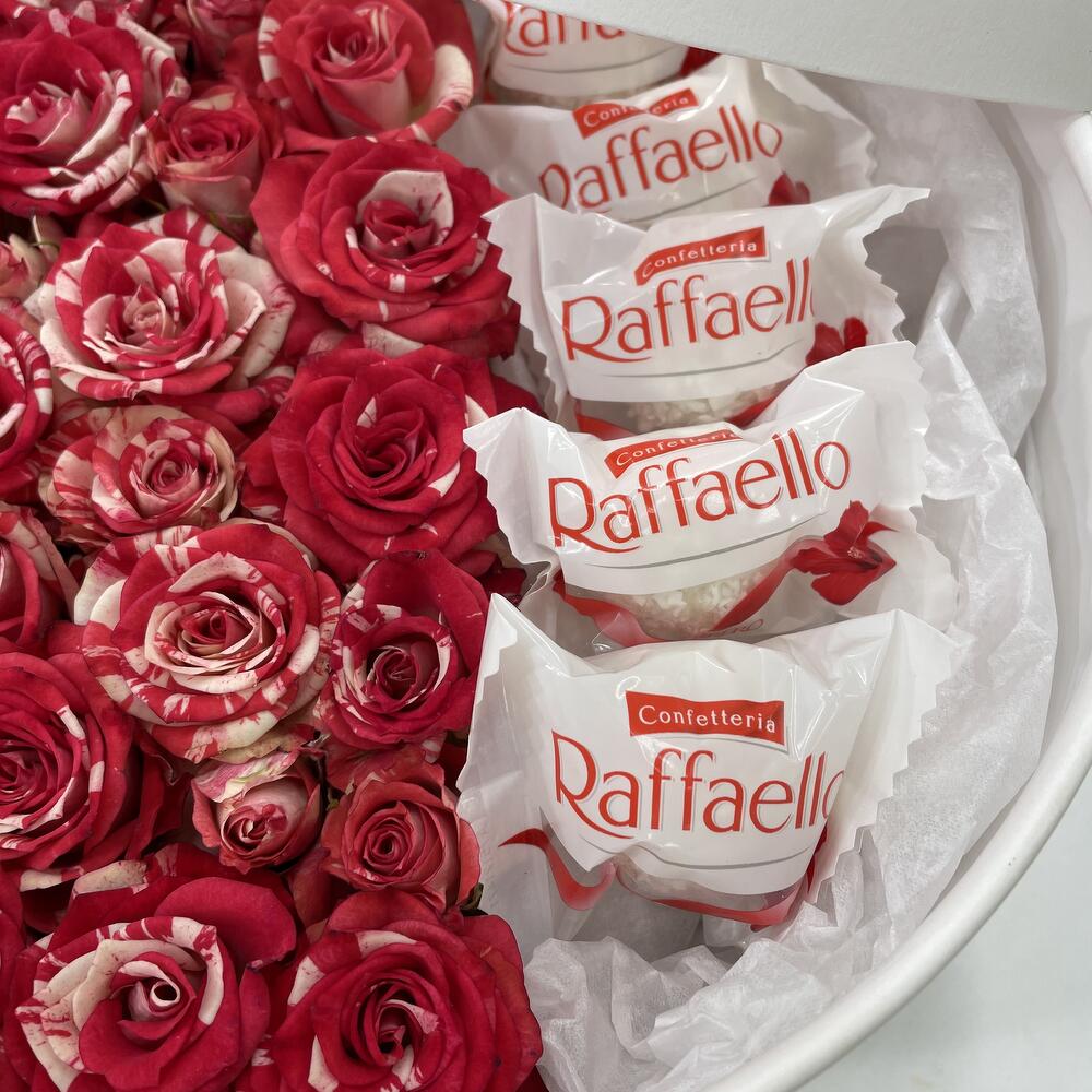 “Сладкое сердце ” – цветочная композиция с сладостями в коробке “Сердце”