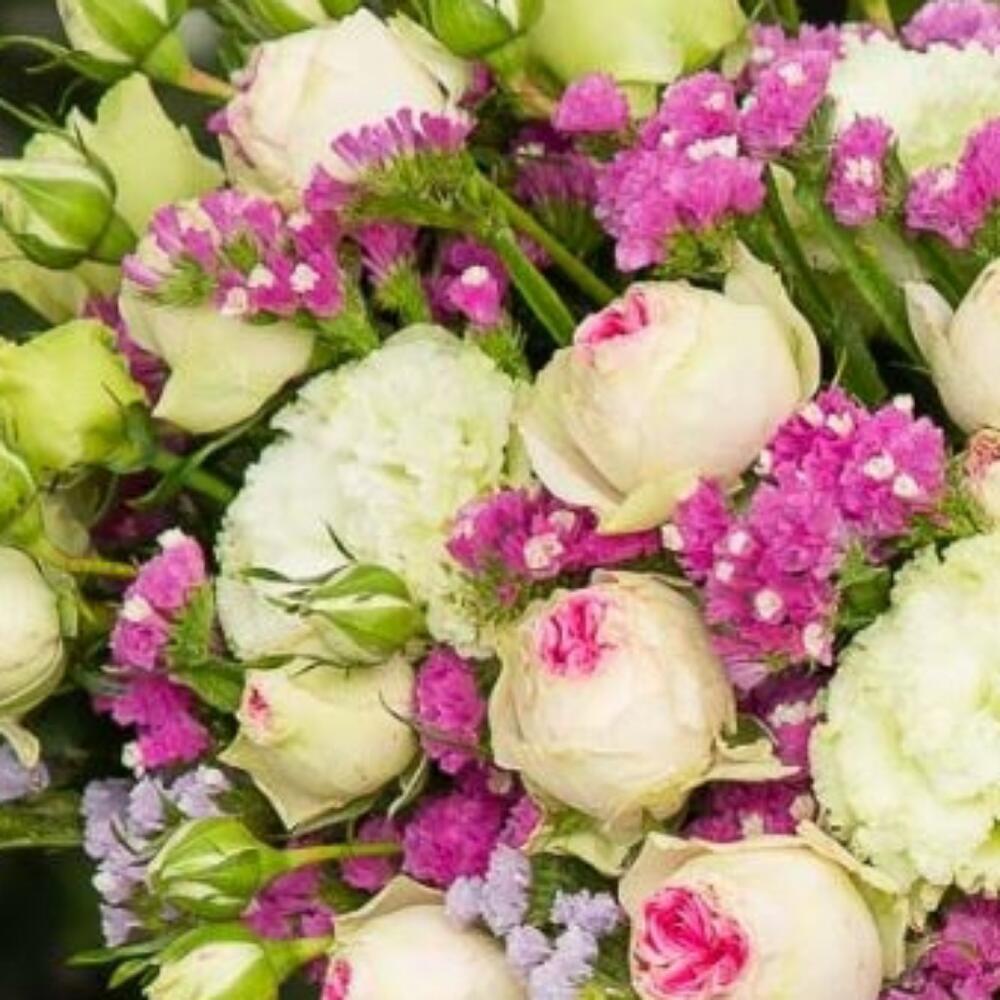 Лизиантус – 5 шт. Лимониум – 2 шт. Кустовая роза – 5 шт.