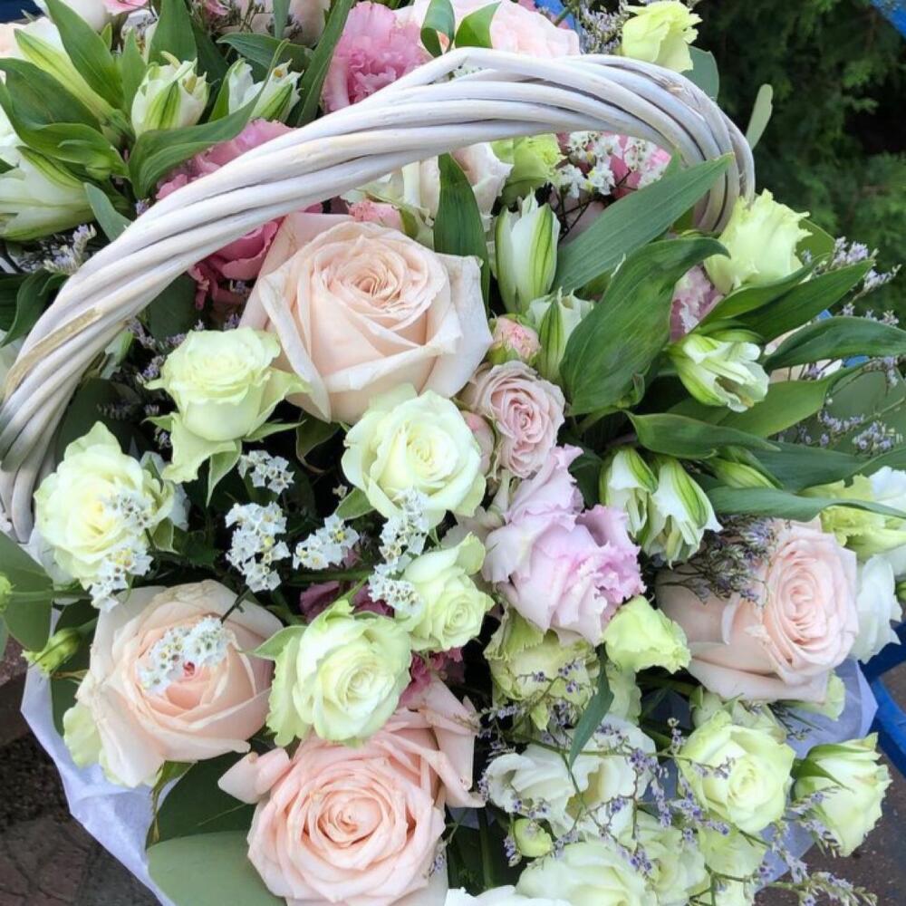 Нежнейшая, воздушная корзина в бело-розовых тонах.