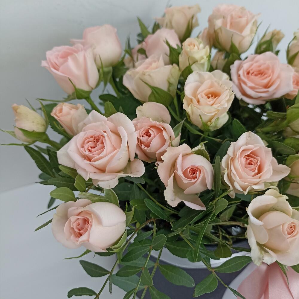 Роза кустовая – 7 шт.Оазис – 1 шт.Фисташка – 2 шт.Коробка – 1 шт.