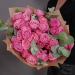 Эвкалипт – 2 шт.Упаковка – 1 шт.Аквапак – 1 шт.питательная смесь для срезанных цветов – 2 шт.роза кустовая артезия – 11 шт.