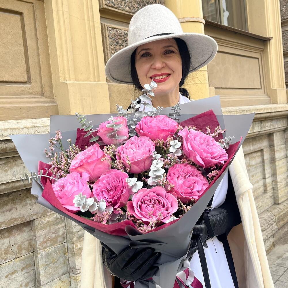 ЛЕДИ КРАУН премиальный букет из пионовидной розы Queens Krown
