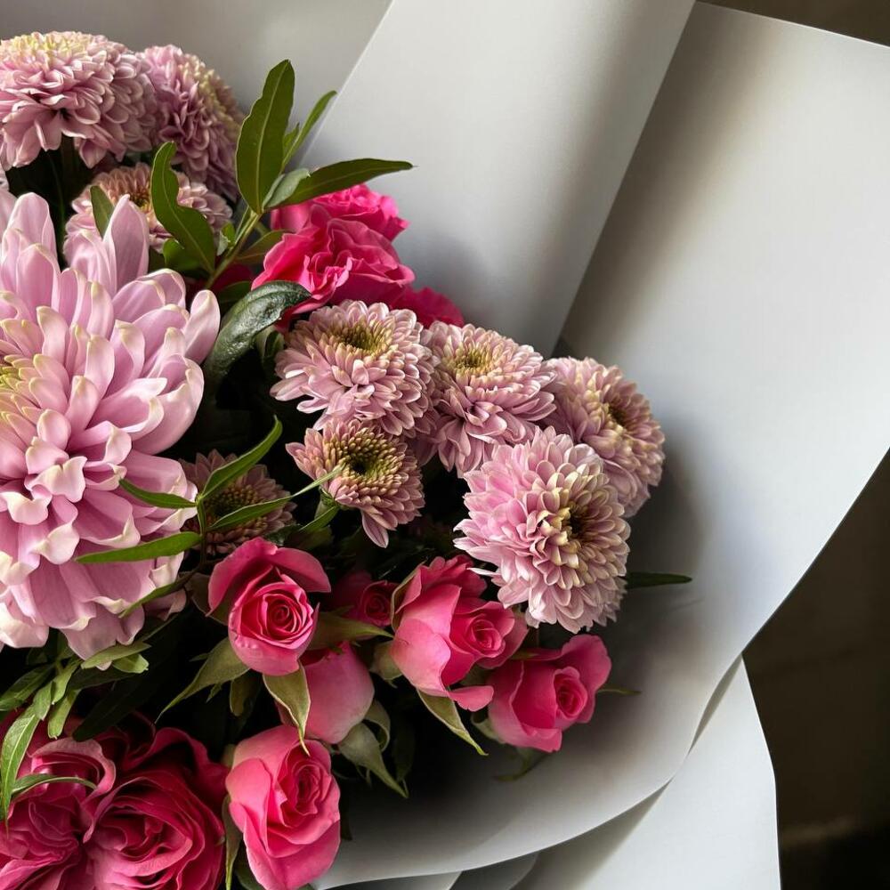 Категорий: Гвоздики, Кустовые розы, Пионовидные розы, Розы, Хризантемы