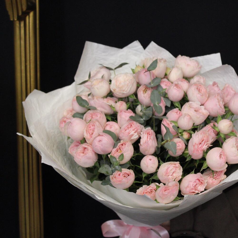 Букет из 25 пионовидных роз в стильной упаковке "Меренговое облако"