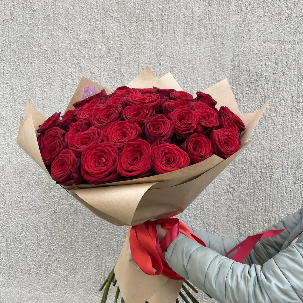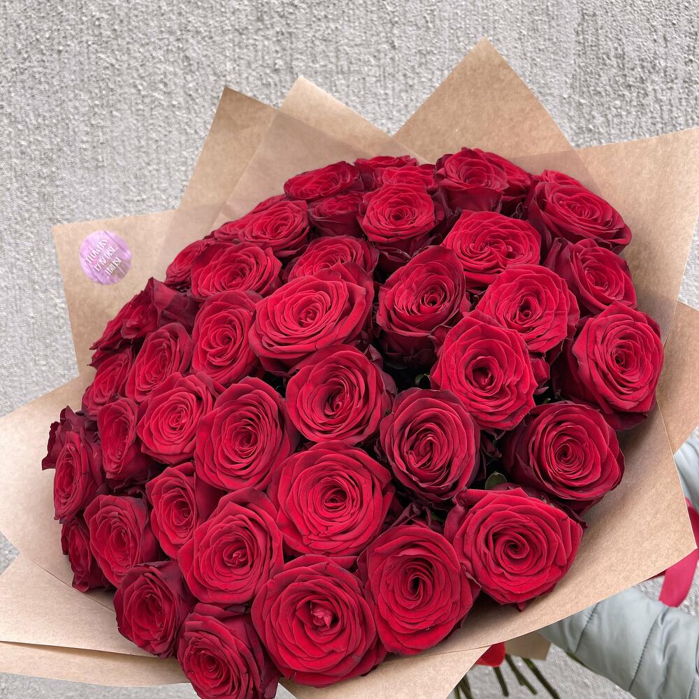 Этот букет из 51 красной розы в крафт бумаге является великолепным проявлением любви и страсти.