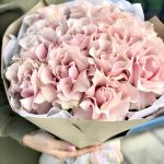 Гортензия и розы Джульетта в букете «Vanilla sky»