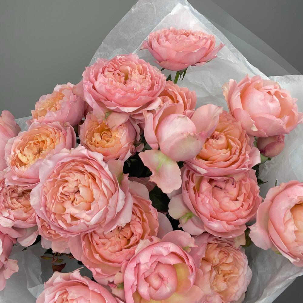 Роза пионовидная – 7 шт.Упаковка дизайнерская – 1 шт.подкормка для срезанных цветов – 1 шт.инструкция по уходу за цветами – 1 шт.записка с вашим текстом – 1 шт.медианты ручной работы из бельгийского шоколада – 1 шт.