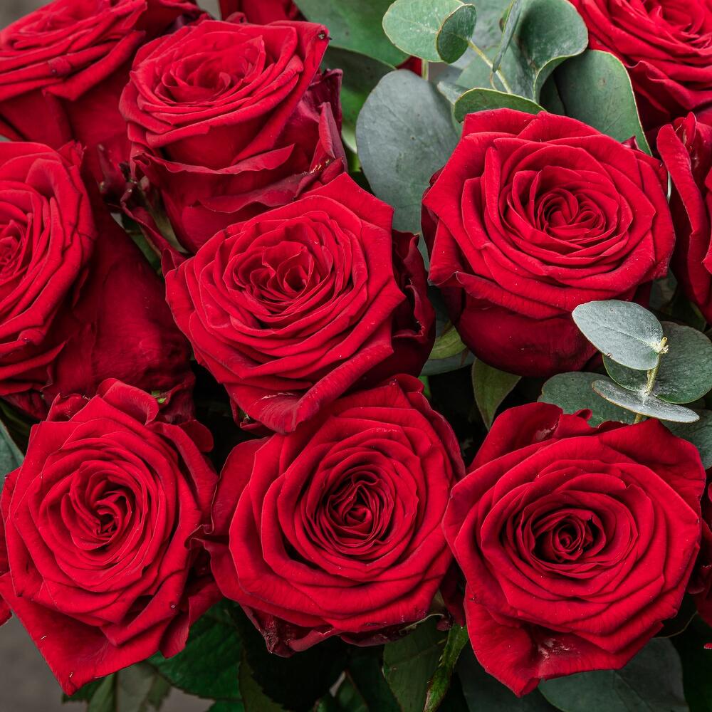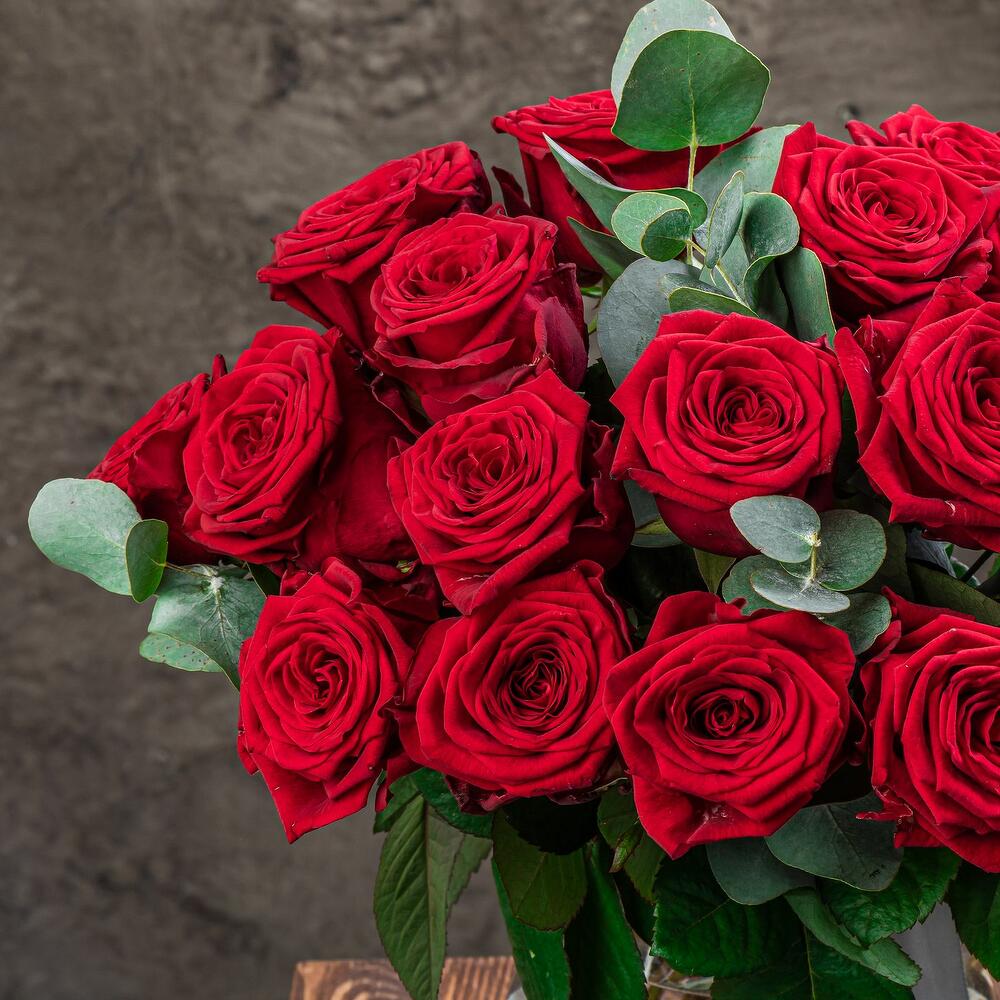 Роза Эквадор – 17 шт.Эвкалипт – 1 шт.