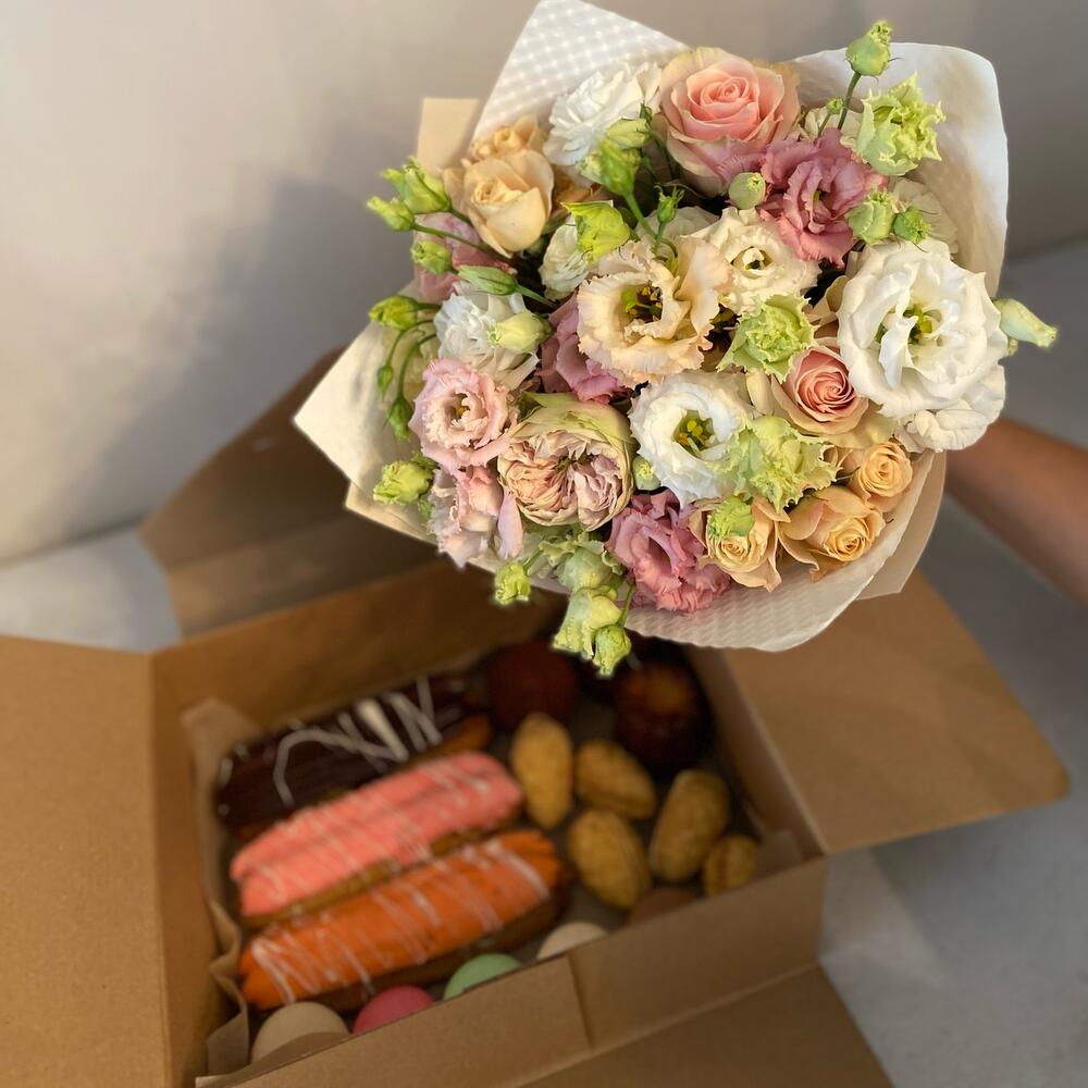 Нежный букет и ассорти сладкого