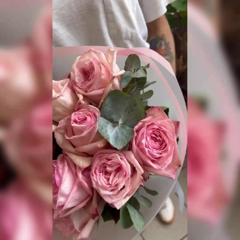 Эвкалипт – 3 шт.розы pink o’hara – 9 шт.
