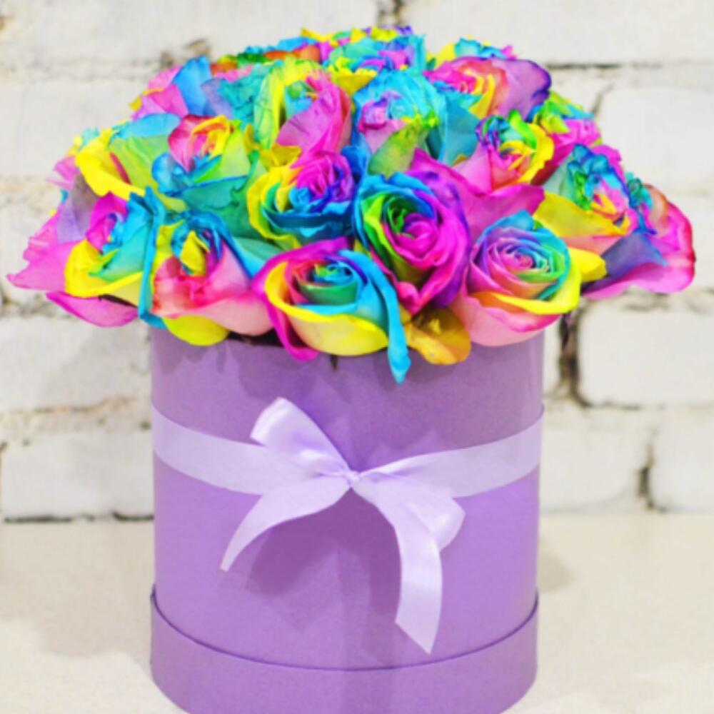 Эксклюзив в наличии в нашем интернет-магазине Необычайно красивые и яркие Радужные Розы Эквадор Композиция из 25 штук в шляпной коробке обязательно оставит самые яркие эмоции у получателя надолго! Шляпная коробка в ассортименте!❗️Обратите внимание❗️Подарочная упаковка, открытки, вазы, топперы, вазоны и праздничные аксессуары доступны в доп.товарах!✅ Наш интернет-магазин на рынке уже более 8 лет!✅ Свежие цветы 3 раза в неделю!✅ Собираем букеты и композиции любой сложности, учитываем все ваши пожелания!