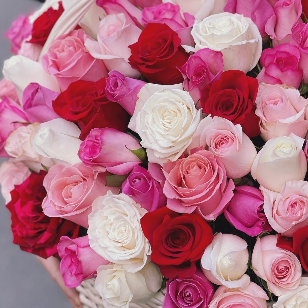 Метки: 51 роза, от 5000 руб, цветы в корзине