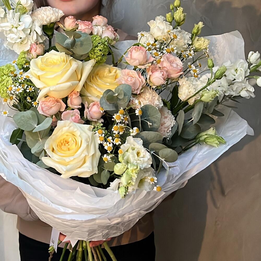 Категорий: Кустовые розы, Лизиантусы, Пионовидные розы, Розы, Ромашки