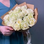 Роза белая в крафте 19 шт