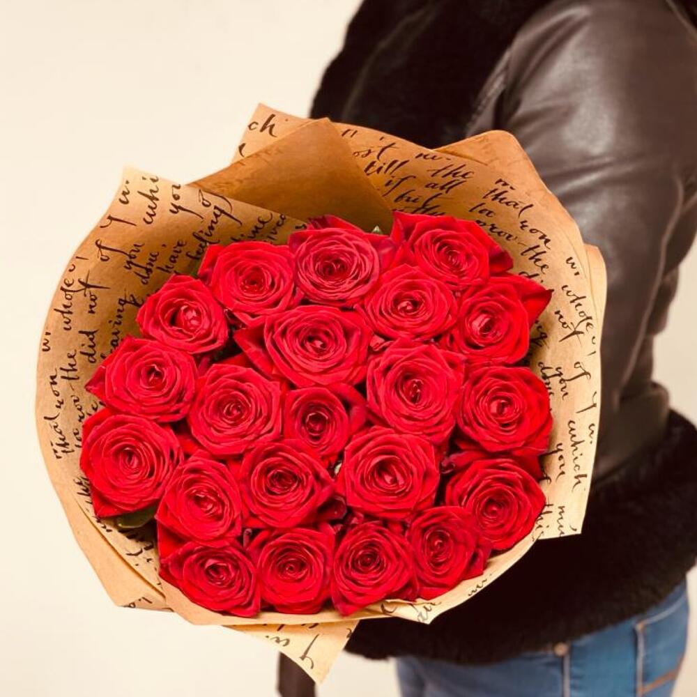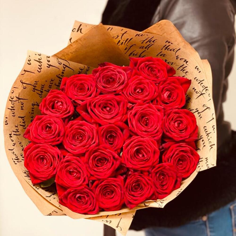 розы 21 штт эквадор – 21 шт.Крафт – 2 шт.Лента атласная – 1 шт.