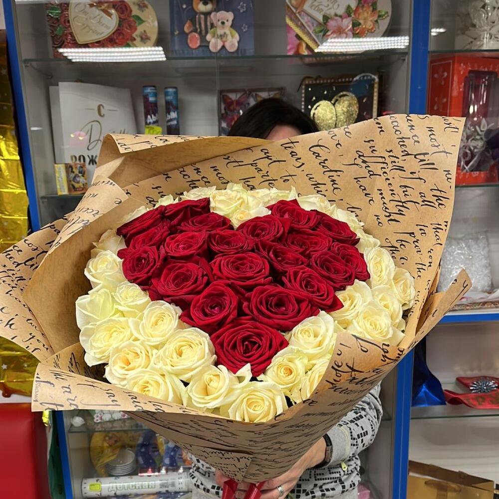 Розы 51 штука 60 см Сердце