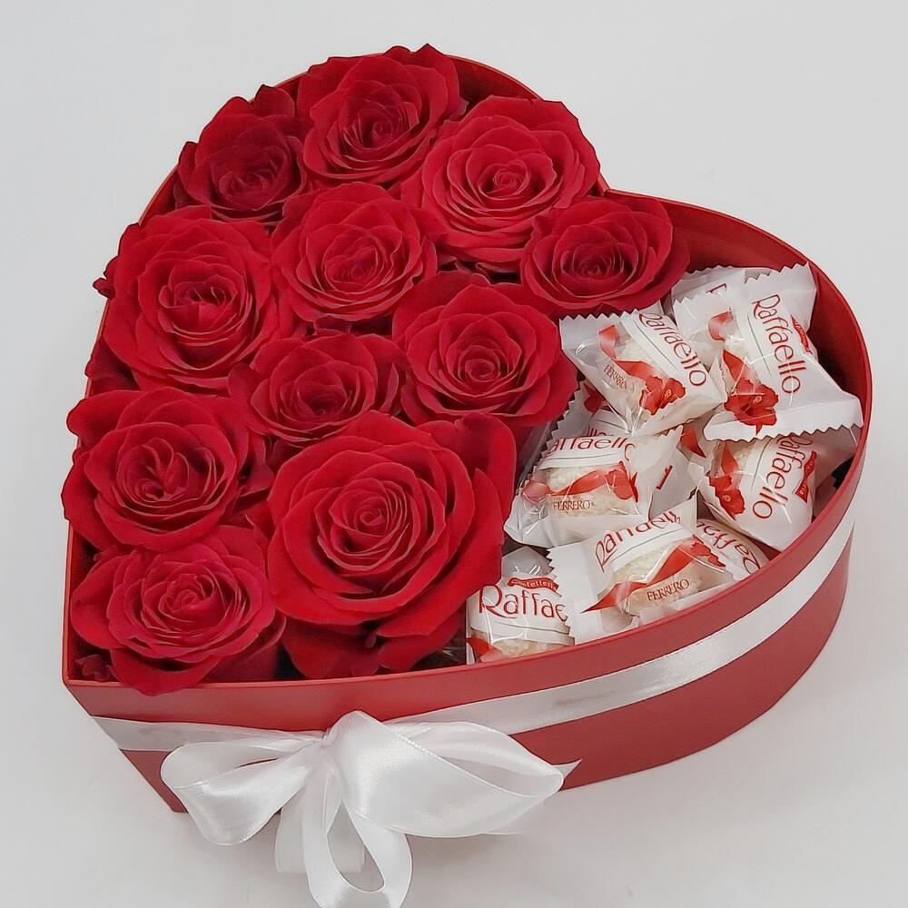 Щикарный подарок для самых любимых – красные эквадорские розы с конфетами Рафаэлло в коробке-сердце! Вместо тысячи слов…