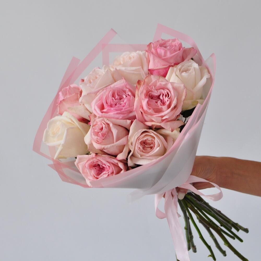 Невероятные. Парфюмированные розы Дэвида остина вайт и пинк охара!Настоящее пионовидное чудо среди цветов. Аромат потрясающий, сражающий наповал Такой букет можно заказать на: 1 сентября, 8 марта, день матери, крестины, рождение ребенка или внука, именины, годовщину бракосочетания.