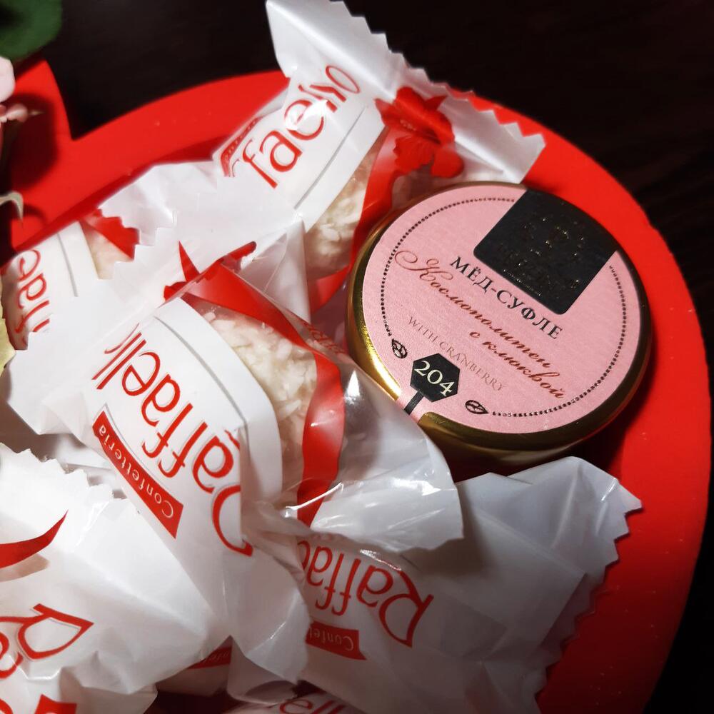Красное сердце с нежной композицией из цветов с рафаэлло и мёдом -прекрасный подарок для девушек и женщин.Рафаэлло безусловно одна из самых желанных конфет на все времена.А свежие цветы для девушек и женщин -это всегда, радость и счастье.Побалуйте своих близких. ❤