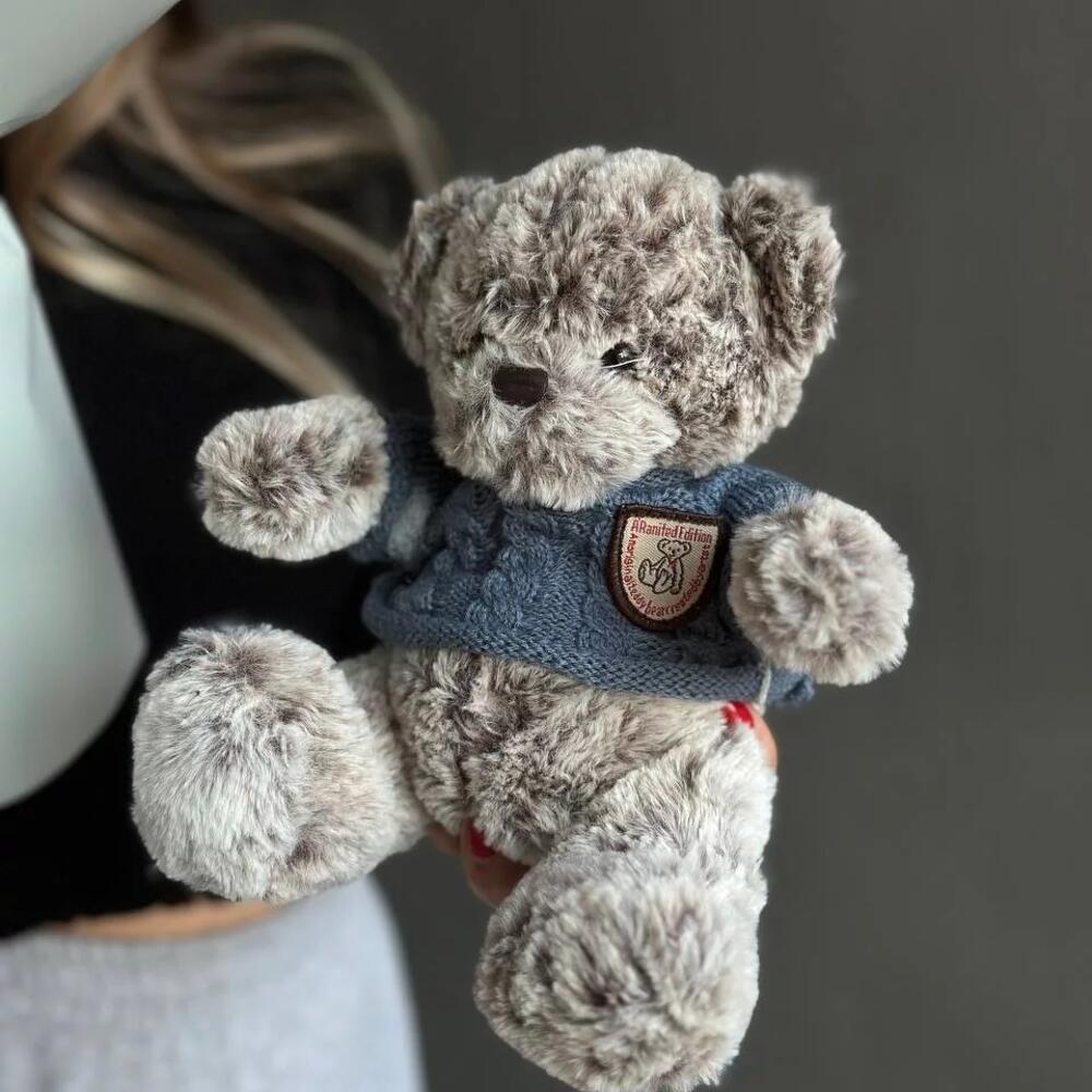 Хризантема кустовая – 3 шт. Спрей роза – 2 шт. Роза Голландская – 1 шт. Эвкалипт – 1 шт. Лизиантус – 1 шт. Мишка плюшевый – 1 шт.
