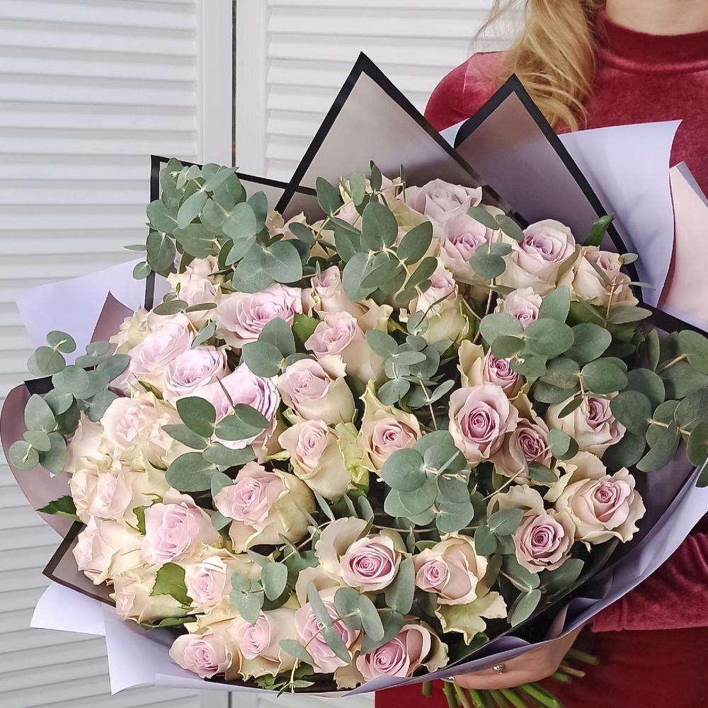 Невероятные нежные розы в сочетании с ароматным эвкалиптом