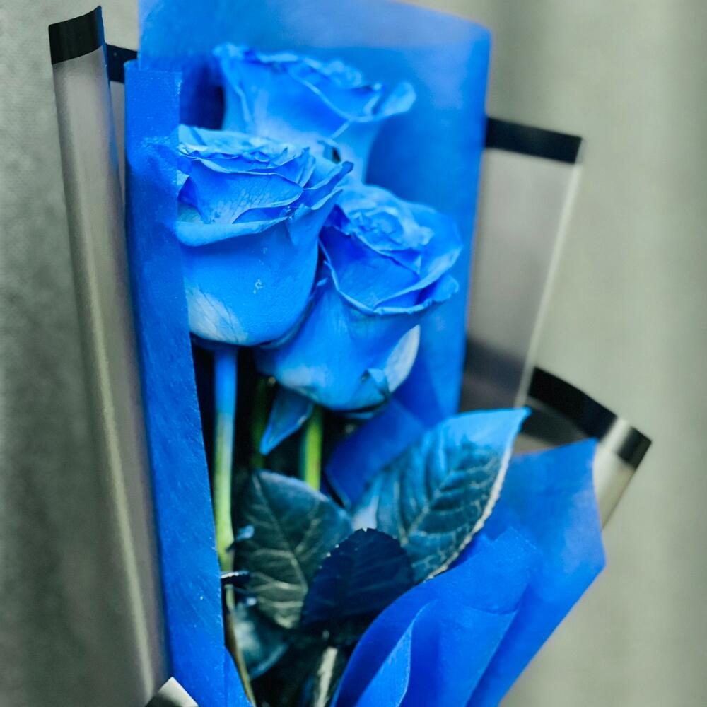 Атласная лента – 1 шт.Синяя роза – 3 шт.матовая упаковка lux – 1 шт.