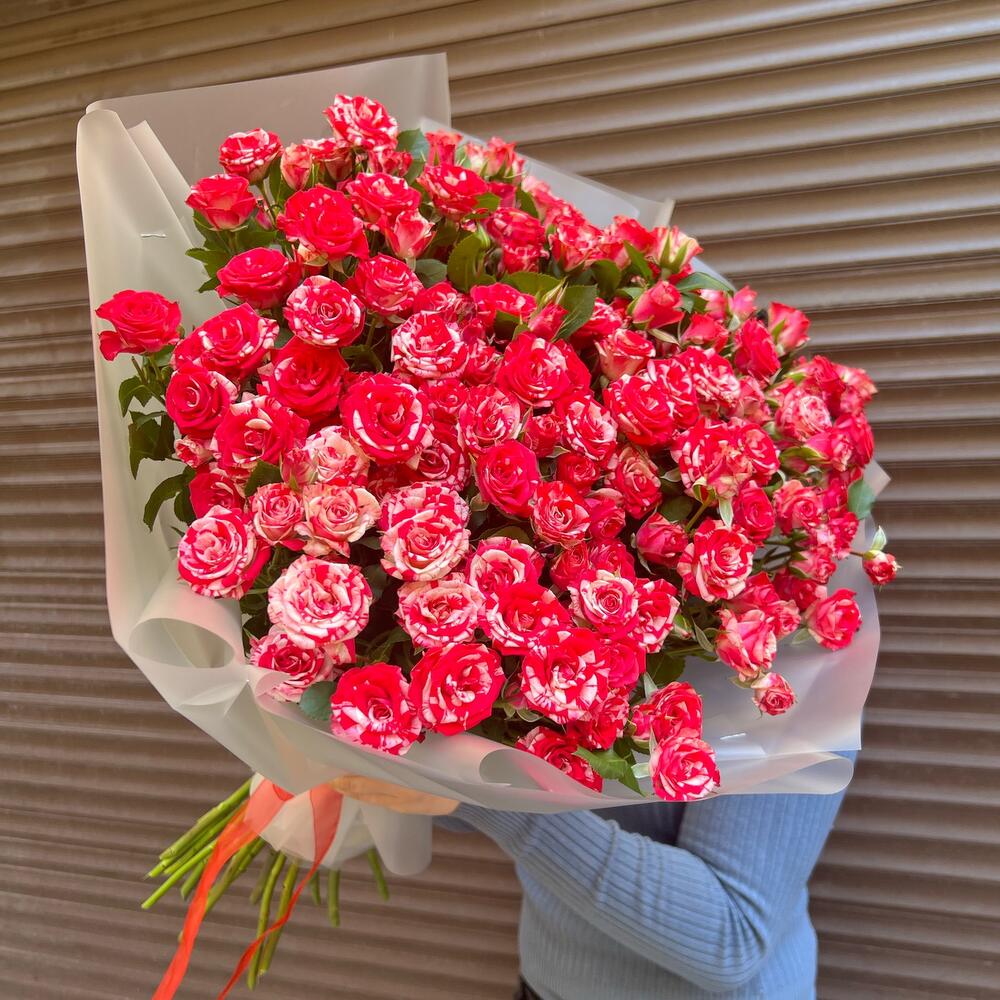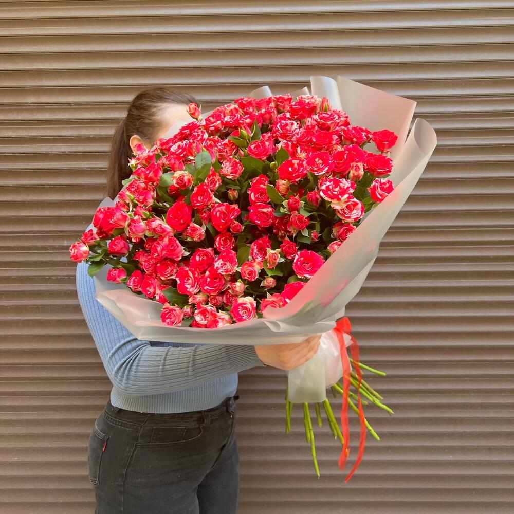 Вип букет из 25 ярких кустовых роз (моно 051)