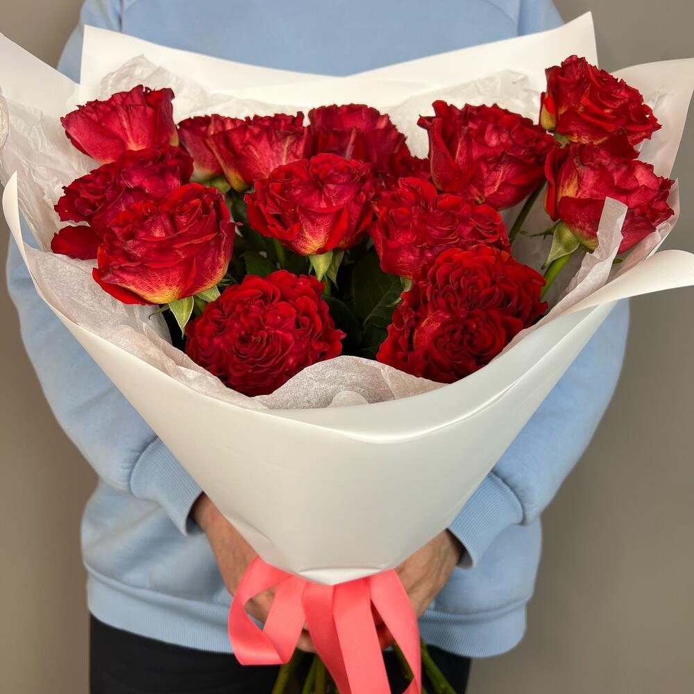 Высокие красные розы (15шт)