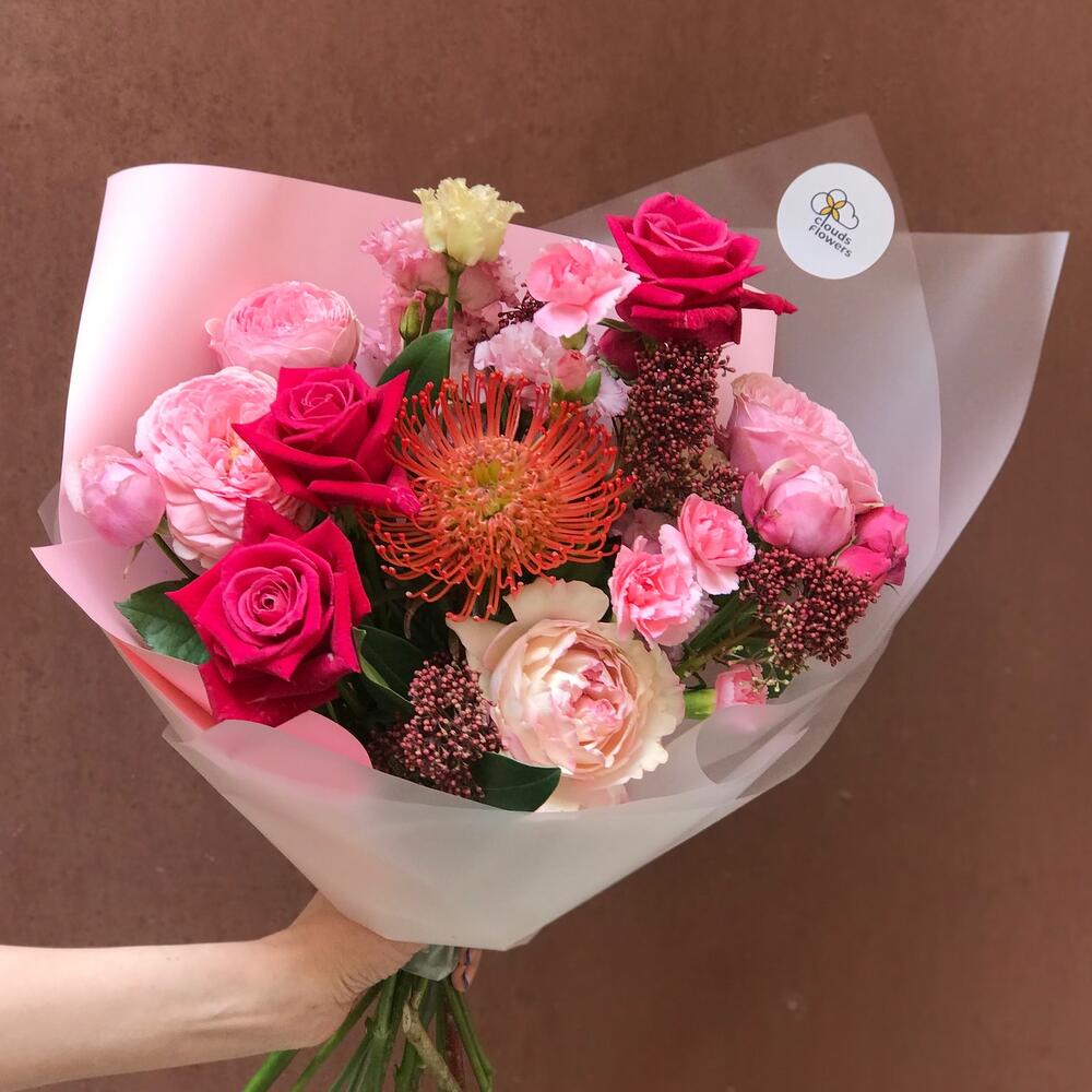 Категорий: Гвоздики, Кустовые розы, Лизиантусы, Пионовидные розы, Розы