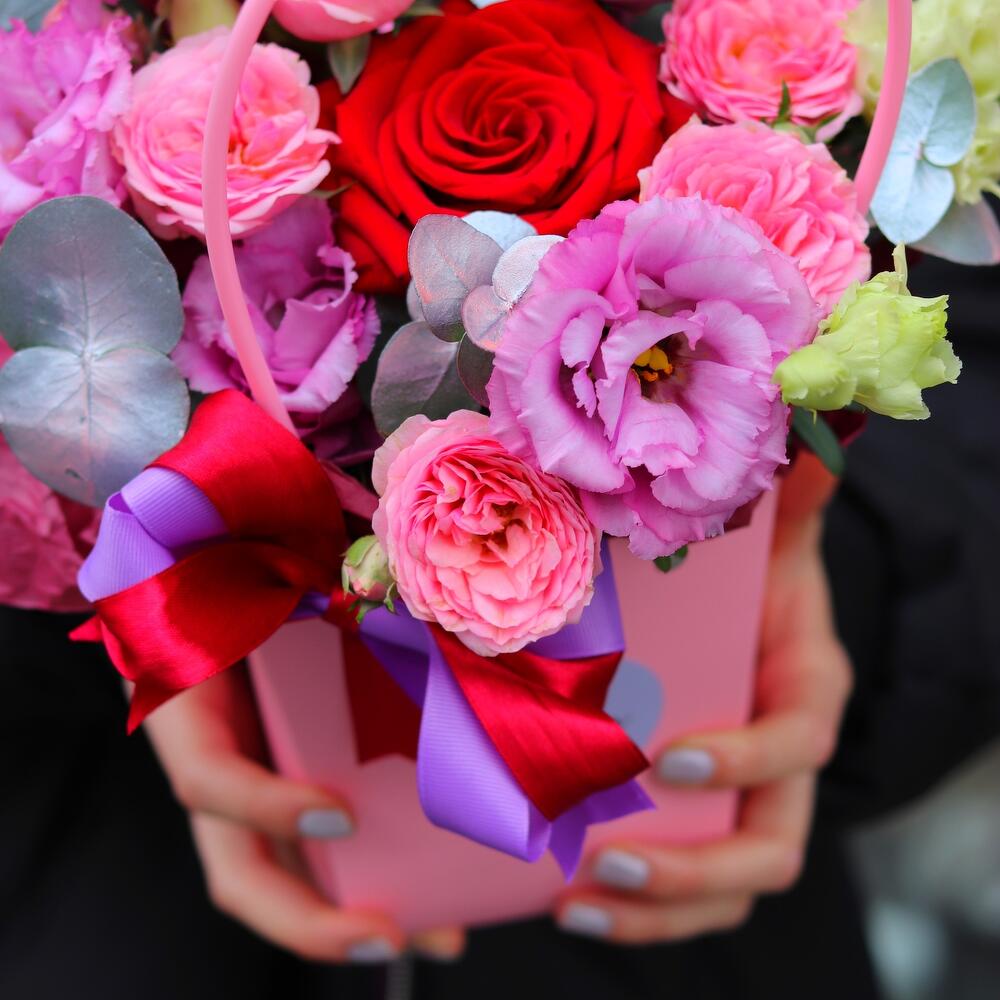 Яркая, чувственная и воздушная композиция, выполненная из роз, лизиантуса и диантуса.Такая композиция точно понравится яркой и энергичной получательнице, и будет долго радовать её.К композиции прилагается открытка с вашими пожеланиями, инструкцию по уходу за цветами и приятный комплимент от нашего магазина – шоколадка.Мы также будем рады отправить вместе с композицией конфеты, шоколад ручной работы или б/а вино по вашим пожеланиям, просто напишите нам в личные сообщения. Заказывая нашу композицию, Вы всегда получите исключительный сервис и заботу о клиенте