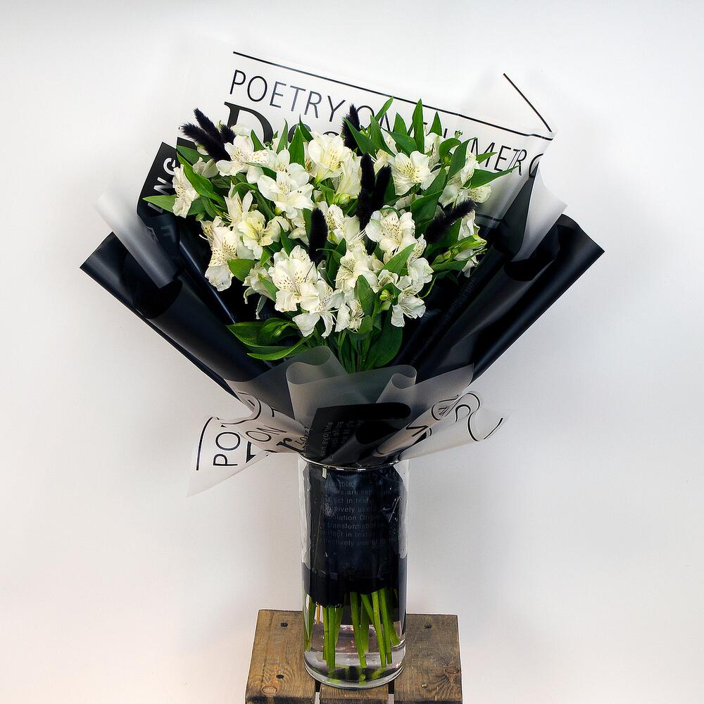 Альстромерия – 15 шт.Лагурус – 15 шт.Оригинальная упаковка – 1 шт.