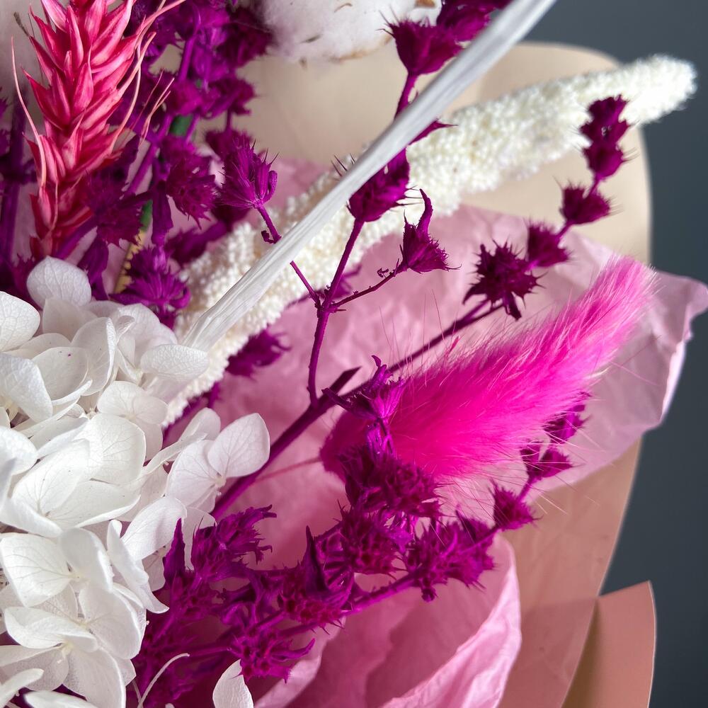 Букет из сухоцветов в лавандовых оттенках с хлопком