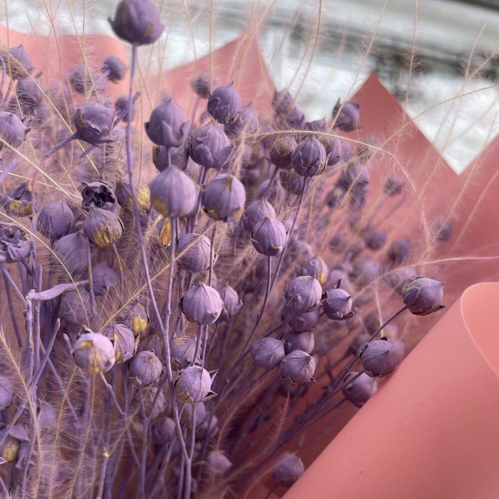 лëн сухоцвет – 10 шт.Ковыль – 9 шт.Упаковка дизайнерская – 4 шт.Лента атласная – 1 шт.