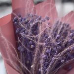 «Лавандовое созвездие» Букет из розы, гвоздики, статица и хлопка