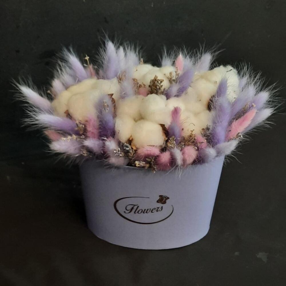 Хлопок – 5 шт.Коробка – 1 шт.Лагурус (сухоцвет) – 70 шт.
