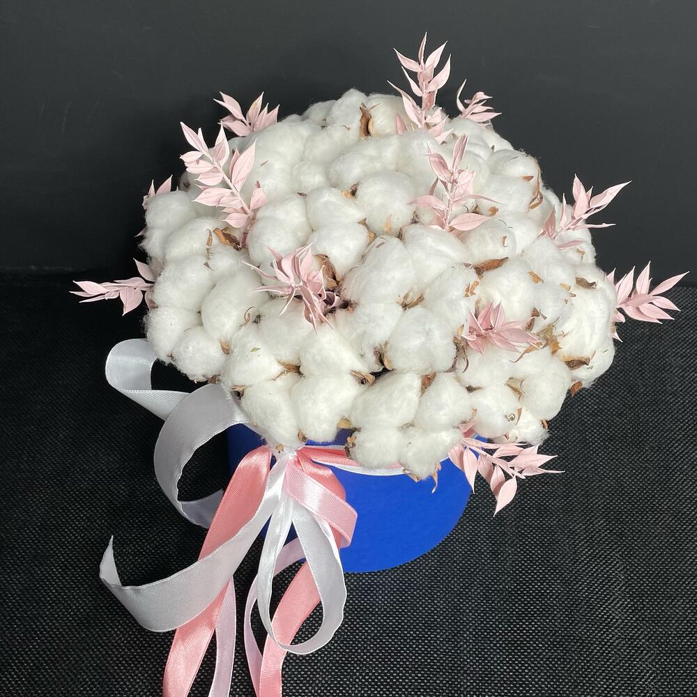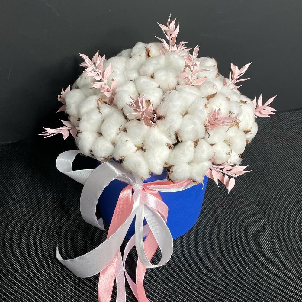 Хлопок – 17 шт.иглица – 1 шт.Оазис флористический – 2 шт.Коробка шляпная – 1 шт.