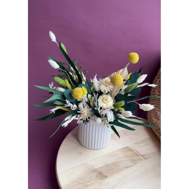 Летняя композиция из сухоцветов и стабилизированных цветов