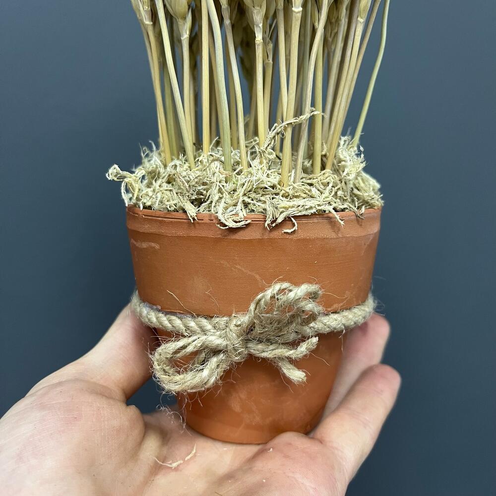 Мох натуральный – 1 шт.Оазис флористический – 1 шт.пшеница (сухоцвет) банч – 1 шт.кашпо керамическое терракот – 1 шт.
