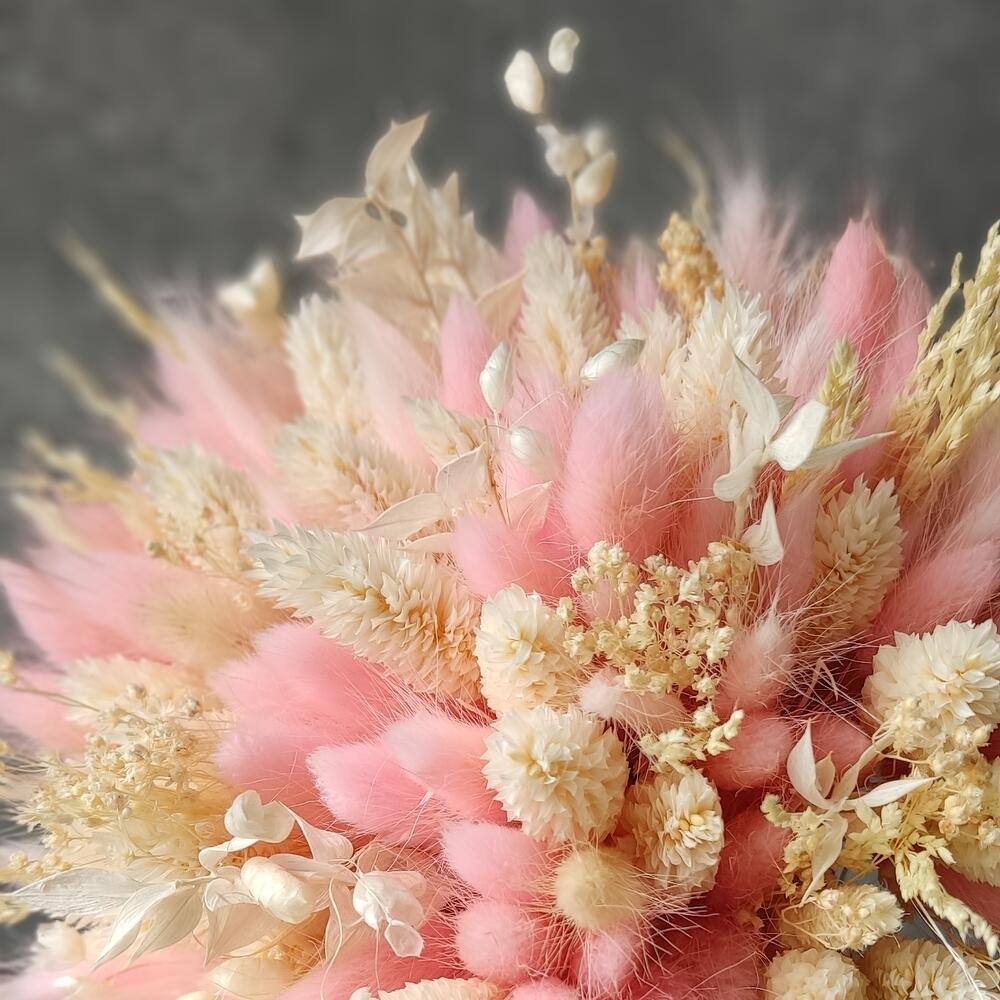 Свадебный букет из сухоцветов с нежным лагурусом. Его можно сохранить после торжества.