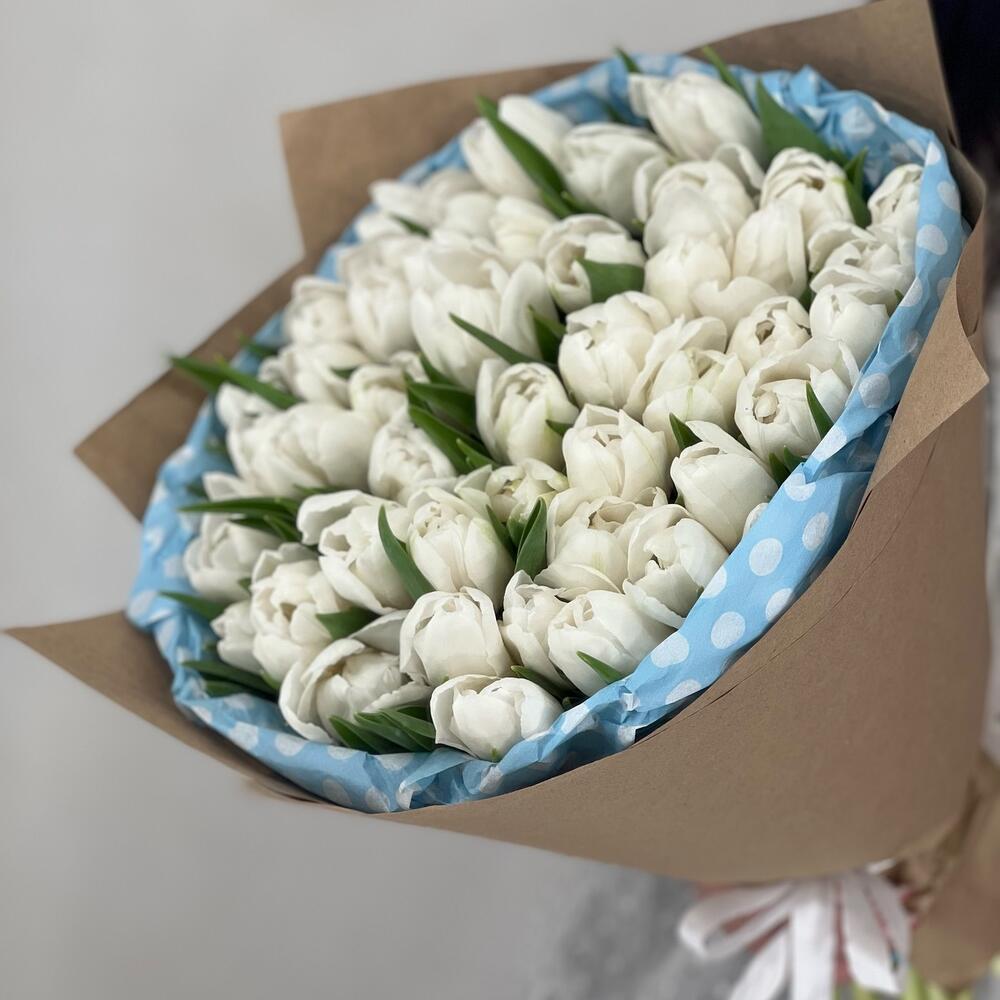Лента – 2 шт.Упаковка – 2 шт.Белый пионовидный тюльпан – 49 шт.