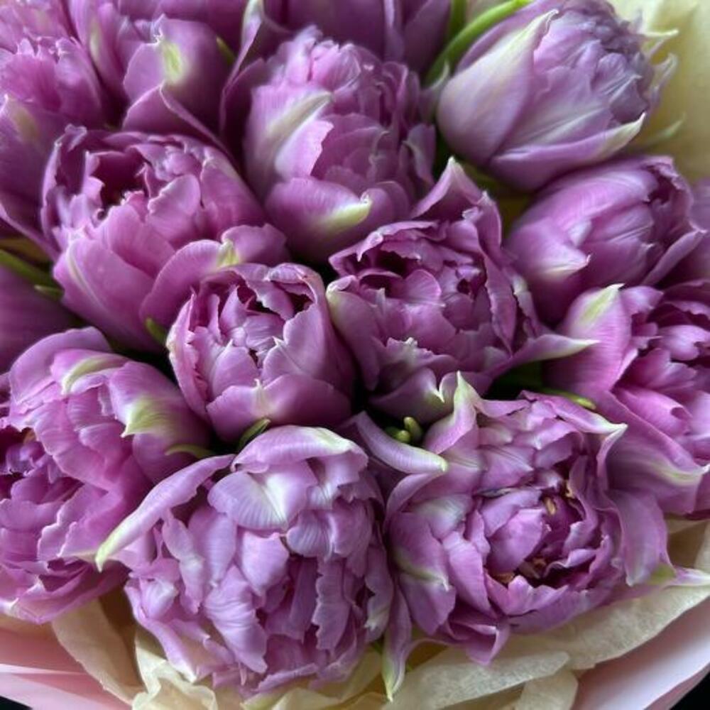 Букет из 15 сиреневых тюльпанов “Сиреневый туман”