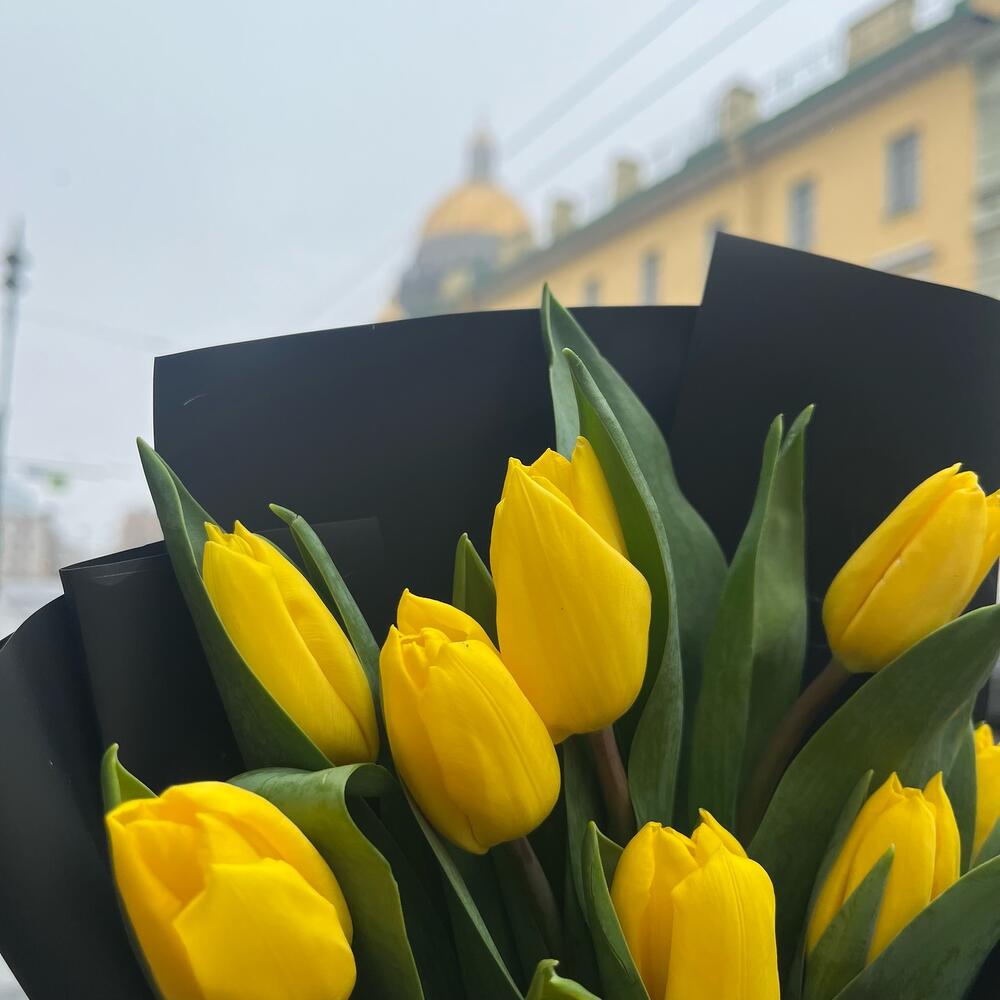 YELLOW BLACK 9 тюльпанов в стильной упаковке