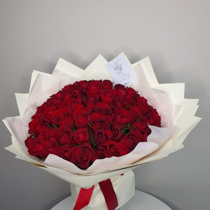 Букет из 51 красной и белой розы микс 35-40 см (Кения) в стильной упаковке